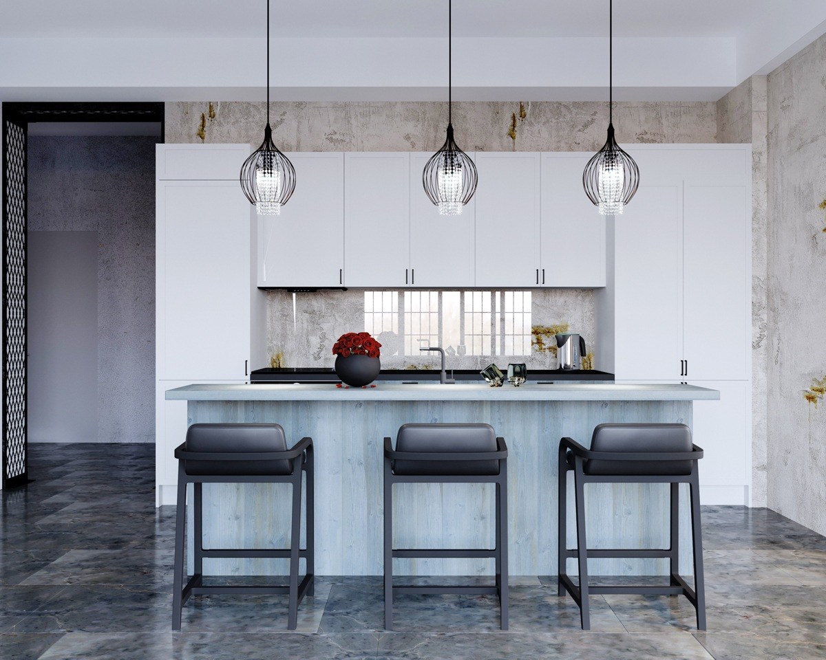 Освещение WOLFRAM Light Studio три светильника над барной стойкой бренда Masiero