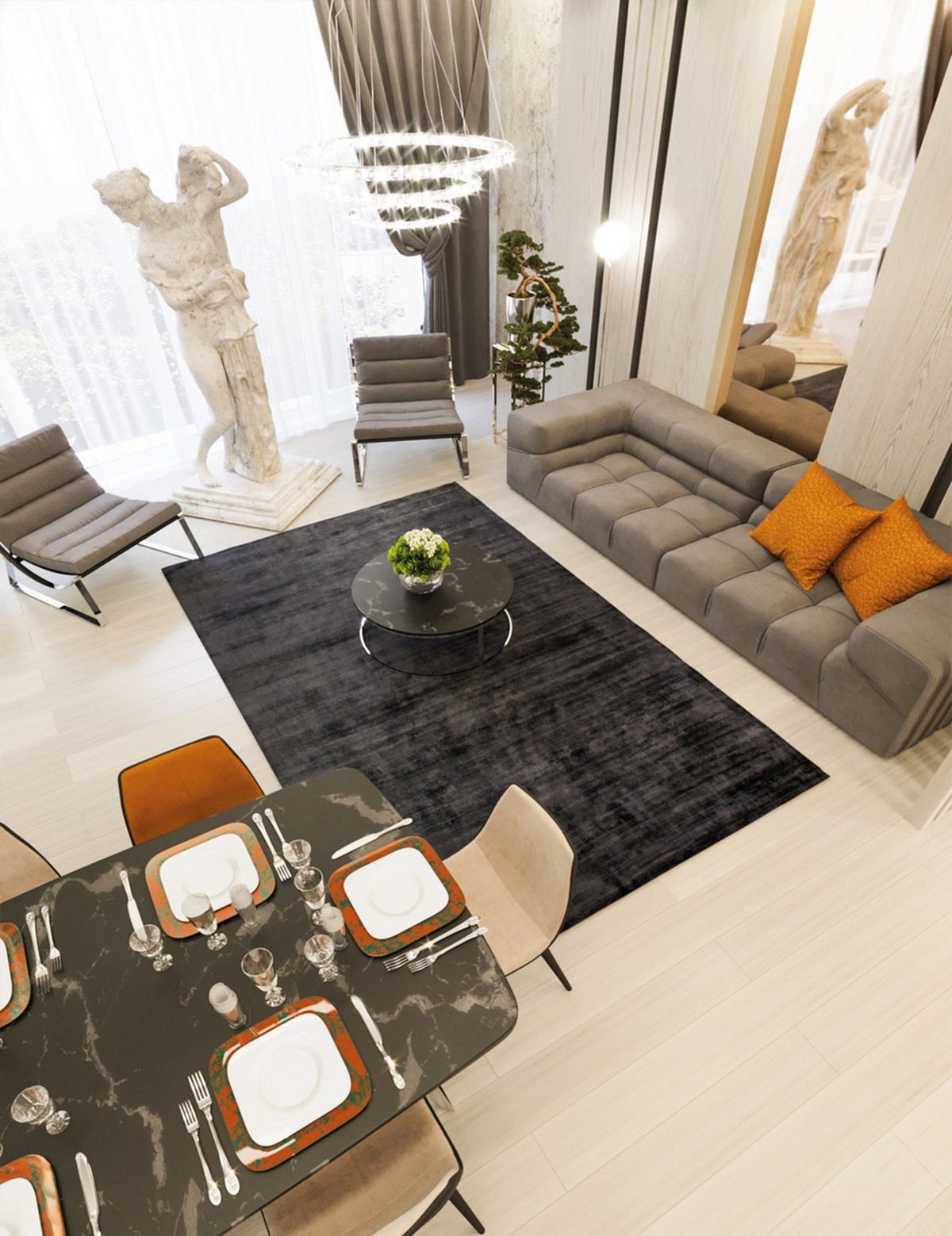 Освещение Wolfram модель Flos — IC Lights; встроенный свет Artemide Algoritmo System модель Diffused Emission; торшер Flos модель IC Lights