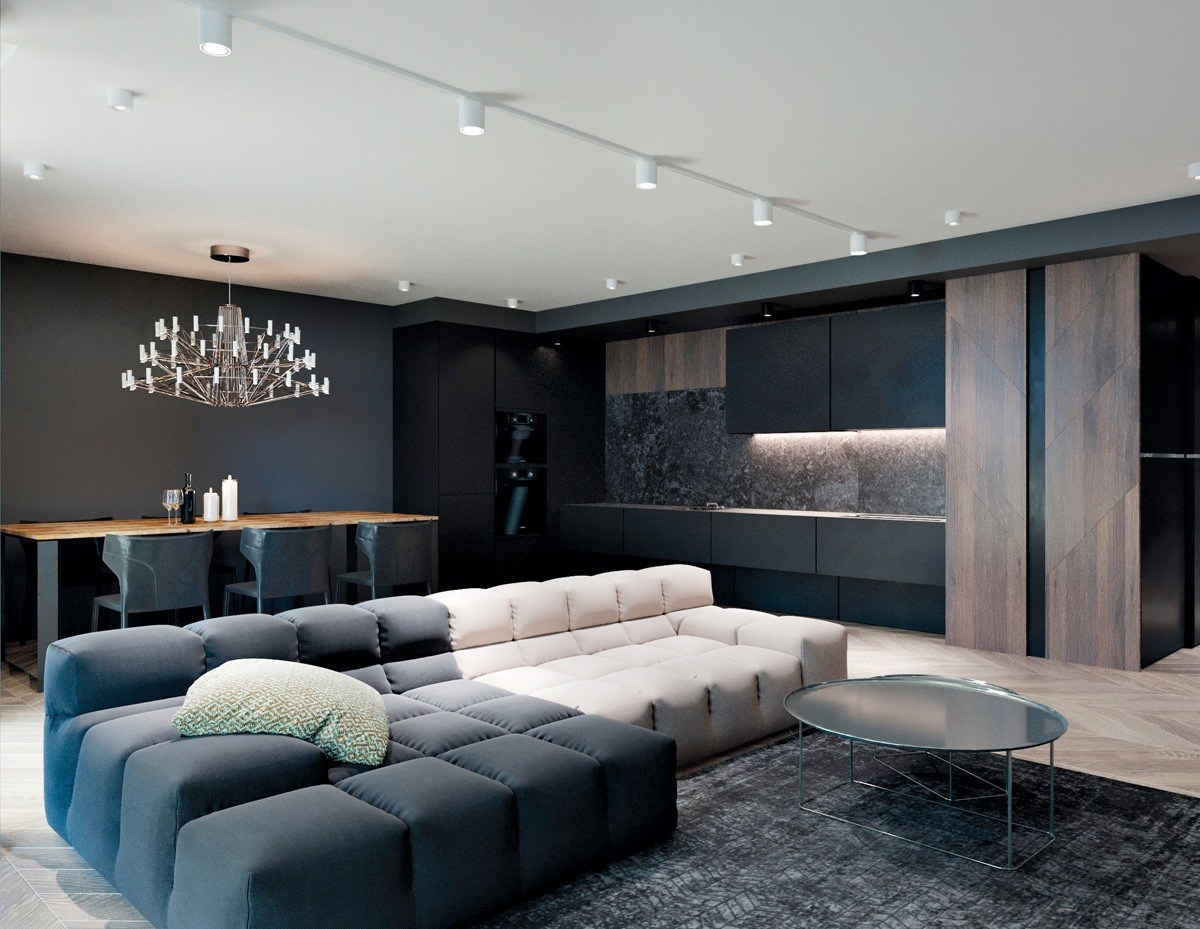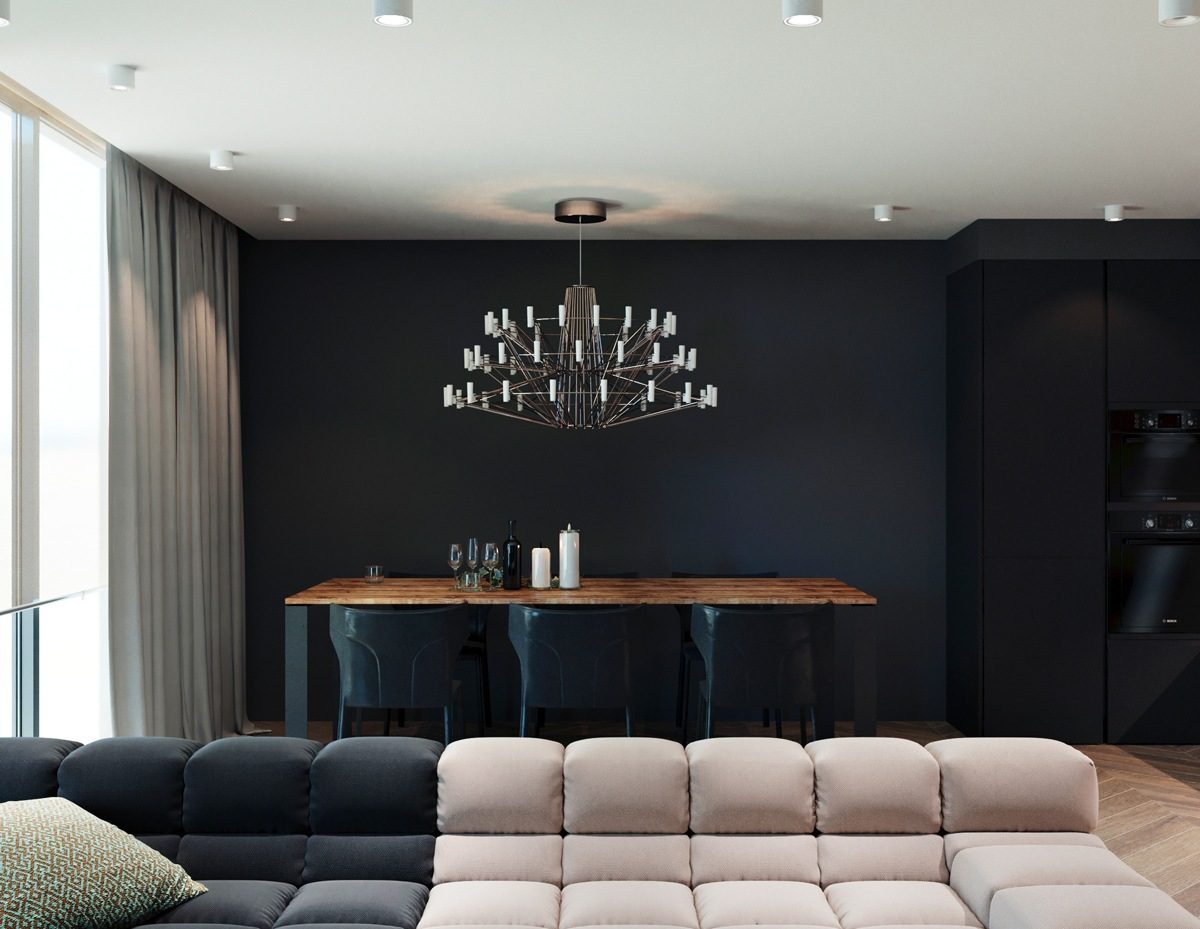 Черный цвет делает помещение более насыщенным и объемным.