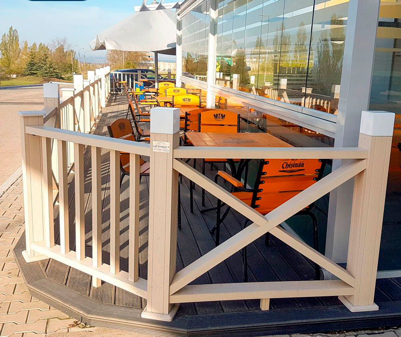 Перила Gardecor представляют собой конструкции, устойчивые к различным факторам окружающей среды (влажность, мороз, ультрафиолетовые лучи и паразиты), которые легко монтировать, но при этом долговечны. Кроме того, из них могут быть изготовлены различные пластиковые и деревянные конструкции такие как ограждения, столы, стулья, ворота и заборы.
