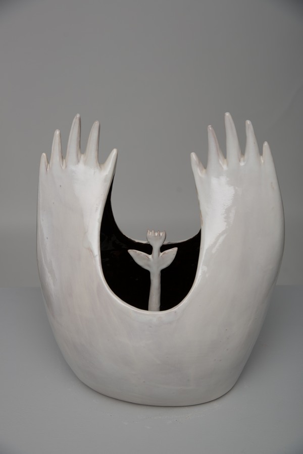 Особенно сосуд с руками, словно защищающими маленький росток. Но при этом произведения практичны и вносят нотку экзотики и шика в любой интерьер.