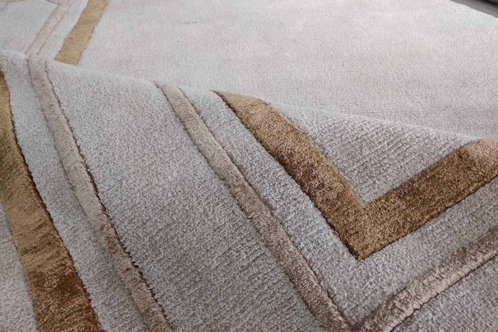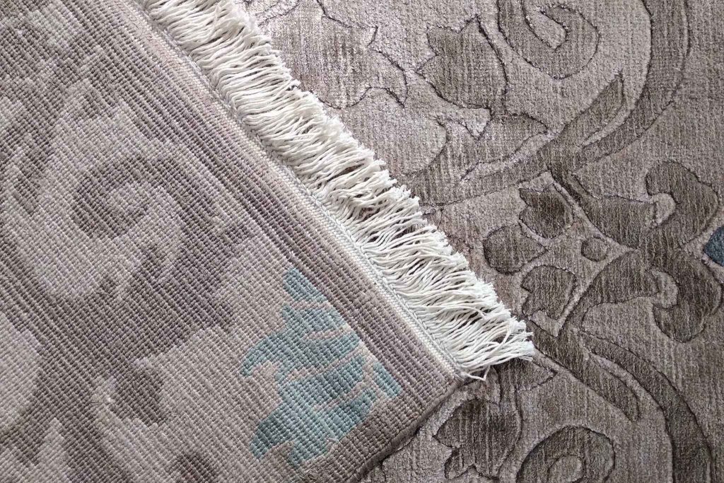Сочетание шерстяной и вискозной нитей в полотне делает ковёр не только приятным на ощупь, но также гладким и шелковистым.