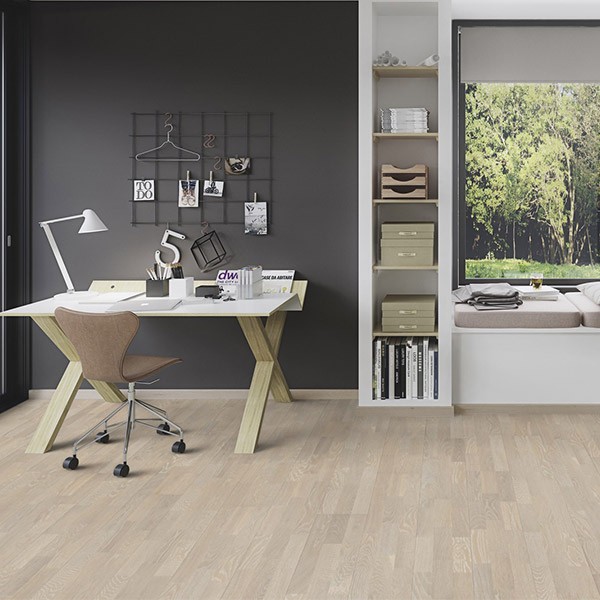Паркетная доска имеет трехслойную структуру с прочной, стабильной основой из древесины лиственных или хвойных пород деревьев и перпендикулярным расположением слоев, что гарантирует твердость и устойчивость такого покрытия, защищает его от деформации и влияния внешних факторов. Благодаря замковому соединению паркет укладывается просто и быстро, а надежное крепление досок обеспечивает плотность и равномерность покрытия без щелей.