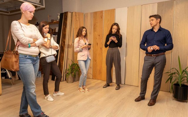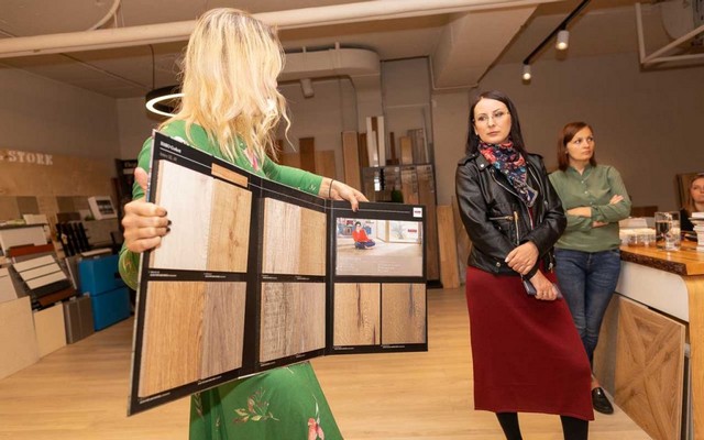 Здесь регулярно проводятся встречи-консультации с дизайнерами - специалистами по интерьеру. На воркшопах подробно рассматриваются вопросы, касающиеся того, как наиболее оптимально использовать предлагаемые шоурумом напольные покрытия, вентилируемые фасады и отделочные материалы.