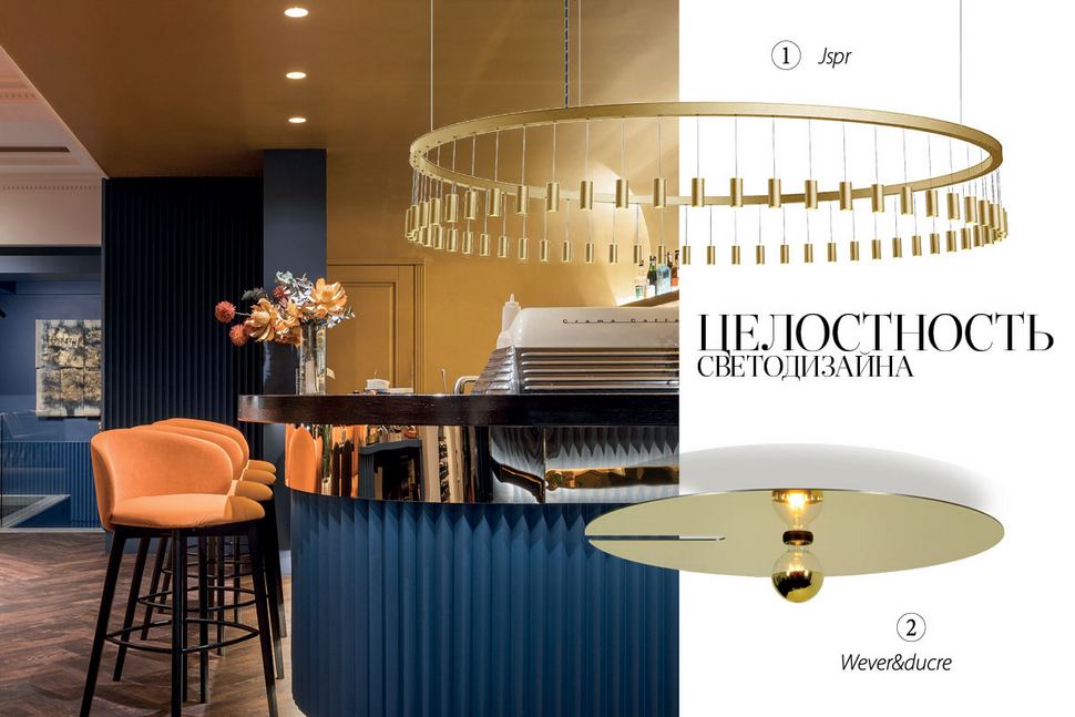 Многофункциональная комбинированная система внутреннего освещения от компании SMARTLIGHT стала частью уникального дизайнерского проекта ресторана европейской кухни Mus Gastranomic. В его основу легла необходимость создания интерьера с неповторимой атмосферой комфорта и уюта, которая оставляет благоприятное впечатление и притягивает посетителей, вызывая желание возвращаться сюда снова и снова. Для создания светового облика ресторана Mus Gastranomic компания SMARTLIGHT использовала комбинацию светильников от ведущих мировых производителей. Входная зона освещается потолочными светильниками MIRRO бельгийской фабрики WEVER & DUCRÉ. Благодаря зеркальной поверхности и форме диска они усиленно рассеивают свет, зрительно увеличивая пространство. Интимную обстановку над столами поддерживают встроенные светильники с очень узким градусом, а за основное освещение в ресторане Mus Gastranomic отвечают дизайнерские люстры из латуни из эксклюзивной коллекции Myllennia голландского бренда JSPR. Благодаря сочетанию элементов классического и современного стиля, люстра Myllennia идеально вписывается в интерьер и объединяет все зоны ресторана воедино.
