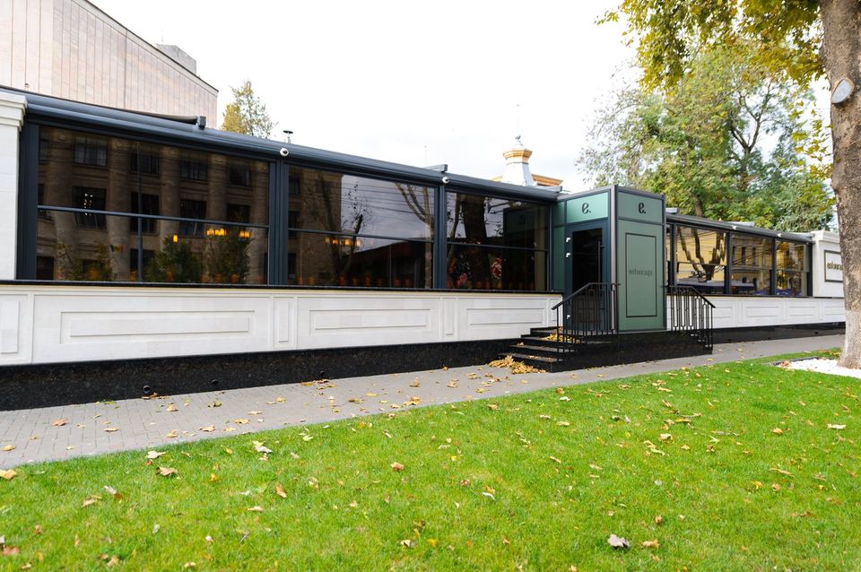 Выдвижные перголы и прозрачные конструкции из безопасного стекла стали частью современных архитектурных решений. Одним из таких реализованных проектов стала серия работ компании Gardecor для элитного ресторана Entourage, находящегося в самом центре столицы.